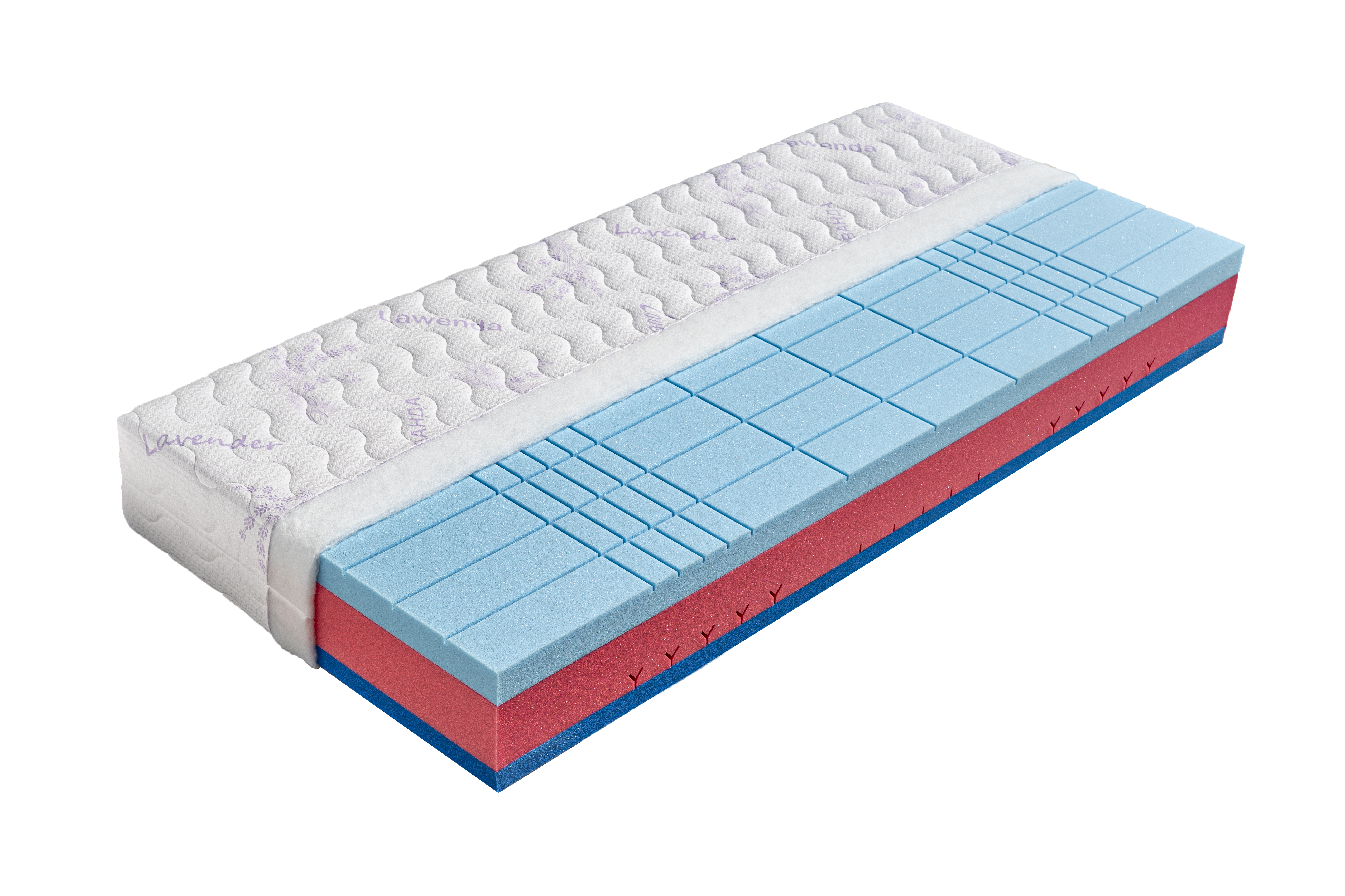 Vrchní stranu matrace změkčuje oblíbená viscoelastická pěna (50 kg/m³). Je charakteristická efektem pomalého vracení se do původní polohy.
