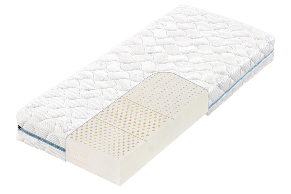 LATEX moniblok - 100% latex to je100% pohodlí. Pružný, takřka nezničitelný latex je vyroben z 1 kusu s použitím přírodních surovin. Ortopedické 5- zónové (anatomické) jádro s vysokou objemovou hmotností 60 kg/m3 s vyztuženou pánevní zónou. Dokonalé pohodlí, vzdušnost, vynikající ortopedické vlastnosti a kopírování křivek těla.