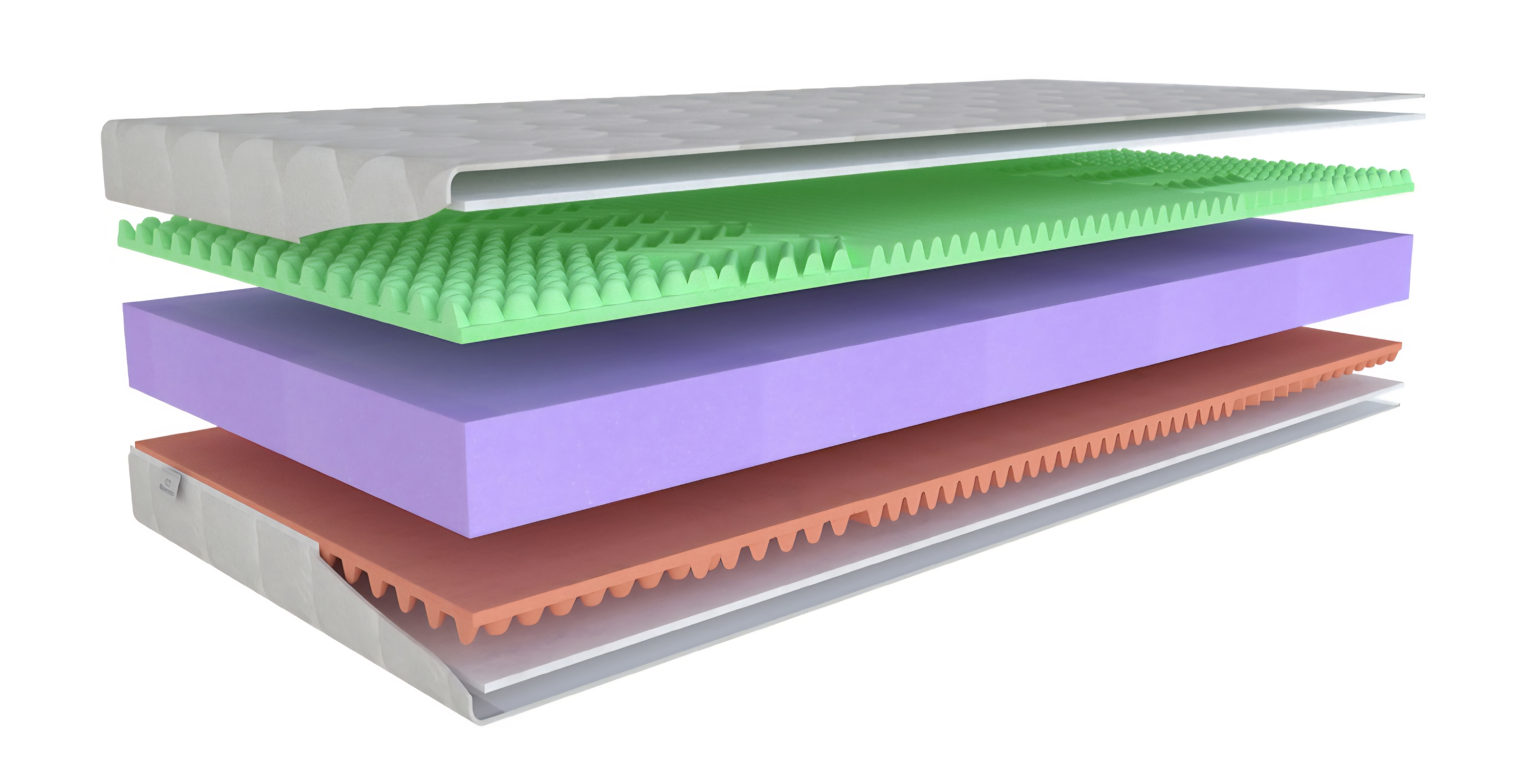 Sendvičová matrace ze značkové pěny Eliocell o vyšší tuhosti a bezproblémové funkčnosti. Vyzónované, vyprofilované jádro zaručuje dostatečnou oporu lidského těla. Matrace lze objednat ve výškách 16, 20 a 24 cm.