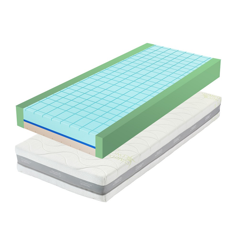 CubeCare komfortní profilace. Obě strany matrace mají profilace ve tvaru kostek, vyvinutou pro zdravotní matrace. Kostky CubeCare pomáhají optimalizovat rozložení tlaku a pomáhají tak zabránit přeležení, a to dokonce i na matracích tužší konstrukce.