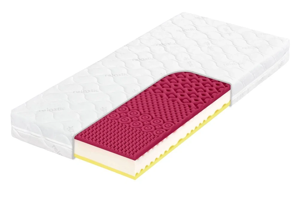 Oboustraná pěnová sendvičová matrace s rozdílnou tuhostí a profilací. Mekčí strana relax s anatomickou masáží a tužší neprofilovaná strana.