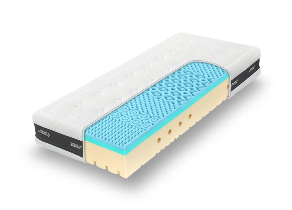 Antibakteriální pružná matrace s hybridní a studenou pěnou vyráběná v České republice . Je úžasně pohodlná, tuhá tak akorát a velmi vzdušná. Hybridní pěna Blue spojuje ty nejlepší vlastnosti studené i paměťové pěny a latexu. Je pružná, prodyšná, má optimální tuhost, vynikající termoregulaci, pomáhá omezit pocení a je super odolná. Skvělá volba pro alergiky. Vhodná i do ložnic s většími výkyvy teplot. Oboustranná konstrukce znamená minimální riziko volby špatné tuhosti.