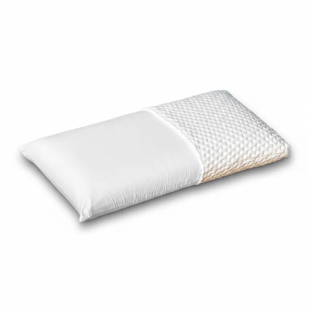 Poskytuje optimální oporu hlavy a úlevu krčním svalům během spánku. Pěna je ekologická a velmi prodyšná. Zachovává svůj tvar, je nedeformovatelná a příjemně měkká.