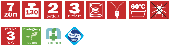 Vrchní tyrkysově zelená vrstva je tvořena elastickou pěnou MediFoam (35 kg/m³), která má tuhost č. 2.