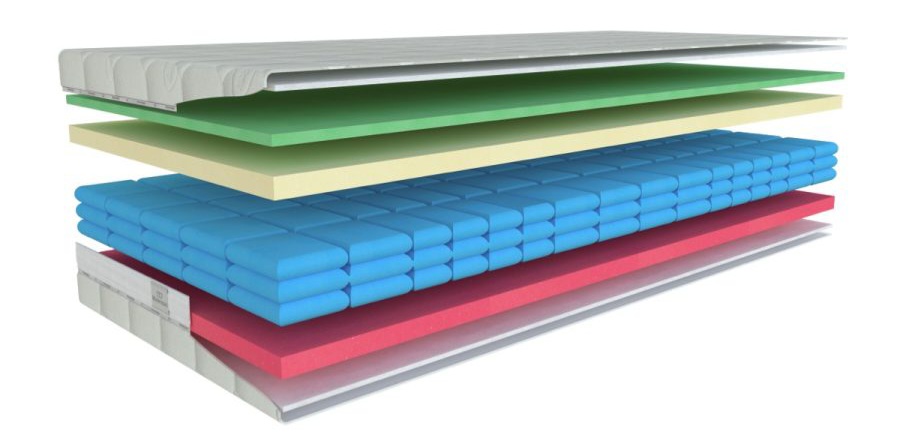 Jádro matrace: pěnové pružiny AIRSPRING – značková pěna ELIOCELL jejíž složení zaručuje dobré kopírovací vlastnosti a pevnost. Tento materiál, jehož kvalita prošla v poslední době zásadním vývojem je zárukou vašeho zdravého spaní. KOMFORTNÍ PĚNA je nový vývojový stupeň vycházející z ELIOCELL pěn, který při zachovaní dlouhé životnosti poskytuje o poznání vyšší stupeň komfortu. Matrace jsou vhodné na lamelový rošt.