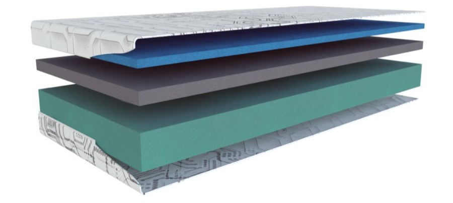 Vrchní deska: „Revoluční paměťová pěna VISCO WIND patří do skupiny „Open Cell memory foam“. Tyto pěny se vyznačují vysokým komfortem a především vynikající vzdušností díky své otevřené buněčné struktuře. Díky tomu se snižuje pocení během spánku, zlepšuje se tepelný komfort uživatele a anti alergické vlastnosti jádra matrace.“