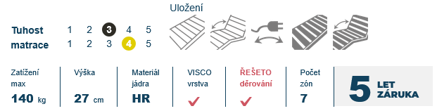 - dlouhá životnost - odolná konstrukce brání proležení a zachovává vlastnosti matrace po dlouhá léta.
