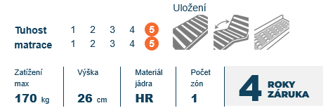 Zesílené pružiny v kombinaci s pěnami s vysokou gramáží zajišťují vysokou odolnost, stabilitu a dlouhou životnost matrace. Tato konstrukce je ideální pro uživatele, kteří preferují pevnější lůžko nebo potřebují matraci s vyšší nosností.