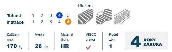 Komfort zvyšuje vrstva VISCO (paměťové) pěny, která reaguje na tlak a teplotu těla. Díky tomu se matrace jemně přizpůsobí konturám těla a pomáhá uvolnit svaly během spánku.