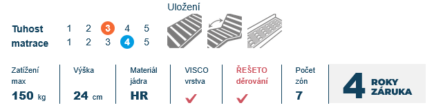 Díky systému ŘEŠETO je matrace velmi dobře odvětrávaná, což přispívá k příjemnému mikroklimatu během spánku. Konstrukce matrace zároveň poskytuje výborné ortopedické vlastnosti i při vyšším zatížení.