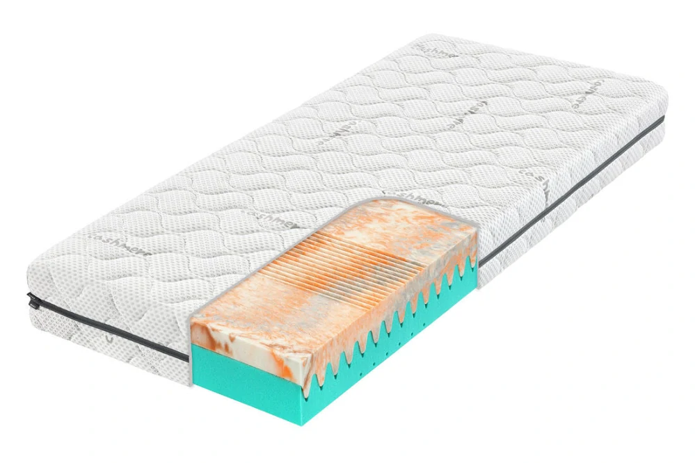 Potah matrace Cashmere Grey - elegantní vzhled, prodyšný a příjemný na dotek. Potah s odvětrávacím systémem, díky němuž matrace dýchá. Probíhající termoregulace zajišťuje spánek bez přehřívání a pocení či přílišného ochlazování. Je dvojdílný a pratelný (na 60 °C)