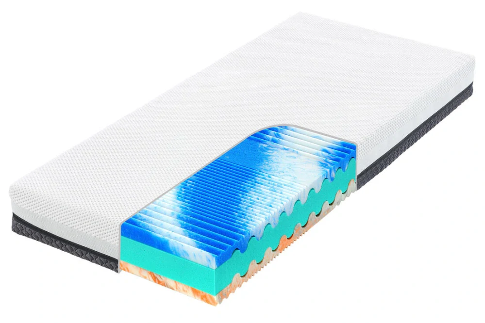 Měkčí strana matrace (strana soft) - díky gelové složce matrace lépe odvádí teplo a poskytuje svěží pocit po celou noc. Pěna s gelovým efektem, která se skvěle přizpůsobí tvaru těla.