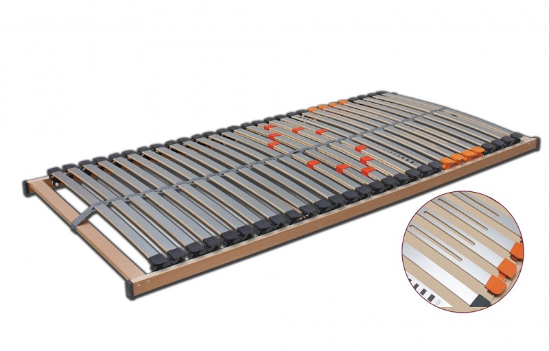 Pevný lamelový rošt s 28 lamelami. Rošt má fóliovou povrchovou úpravu ke snadné údržbě roštu. Uložení pouzder zaručuje vyšší nosnost a dobrou odolnost proti jednorázovému zatížení. Pružné lamely v 7 anatomických zónách uložené ve dvojitých kaučukových pouzdrech jsou umístěny nad bočnicí roštu. Natáčejí se a reagují po celé délce, nejen ve střední části lůžka. V oblasti hrudníku je 5 lamel s možností nastavení tuhosti podle přání uživatele. V oblasti ramen jsou lamely podélně prořezány pro větší pružnost a komfortnější spánek na boku. Středový popruh zajišťuje zvýšenou stabilitu roštu. Celková výška roštu je 8 cm. Nosnost roštu je do 130 kg.
