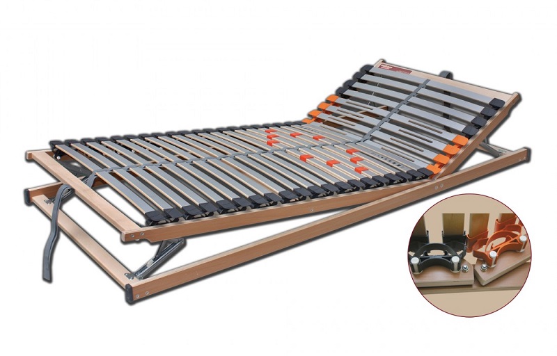 Lamelový rošt s polohováním hlavy a nohou s 28 lamelami uložených v kaučukových pouzdrech. Uložení pouzder nad bočnicí roštu zaručuje vyšší nosnost a dobrou odolnost proti jednorázovému zatížení. Snadnou manipulaci umožňují úchyty na obou koncích roštu. Pevná část roštu mezi polohováním hlavy a nohou nabízí větší plochu pro oporu beder. V oblasti ramen jsou lamely podélně prořezány pro větší pružnost a komfortnější spánek na boku. Rošt má různé úrovně polohování podle potřeb uživatele. Rošt má speciální fóliovou úpravu ke snadné údržbě. Celková výška roštu je 8 cm. Nosnost roštu je do 130 kg.