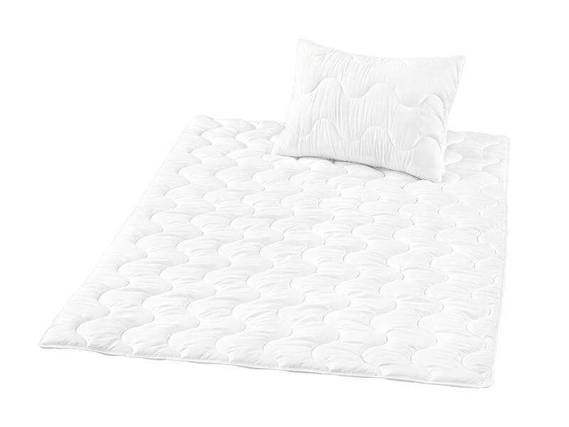 Měkoučké a vzdušné provedení, které navíc omezuje „klouzání v povlaku“. Prošívané, velmi jemné, a přesto pevné a praní odolné mikrovlákno.Přikrývka s klimatizační vrstvou dutého rouna. Polštář, přikrývka a chránič jsou prošívané – drží tvar a výplň zůstává na svém místě. Prošívaný Praní na 60 °C – záruka hygieny a klidného spánku i pro alergiky.